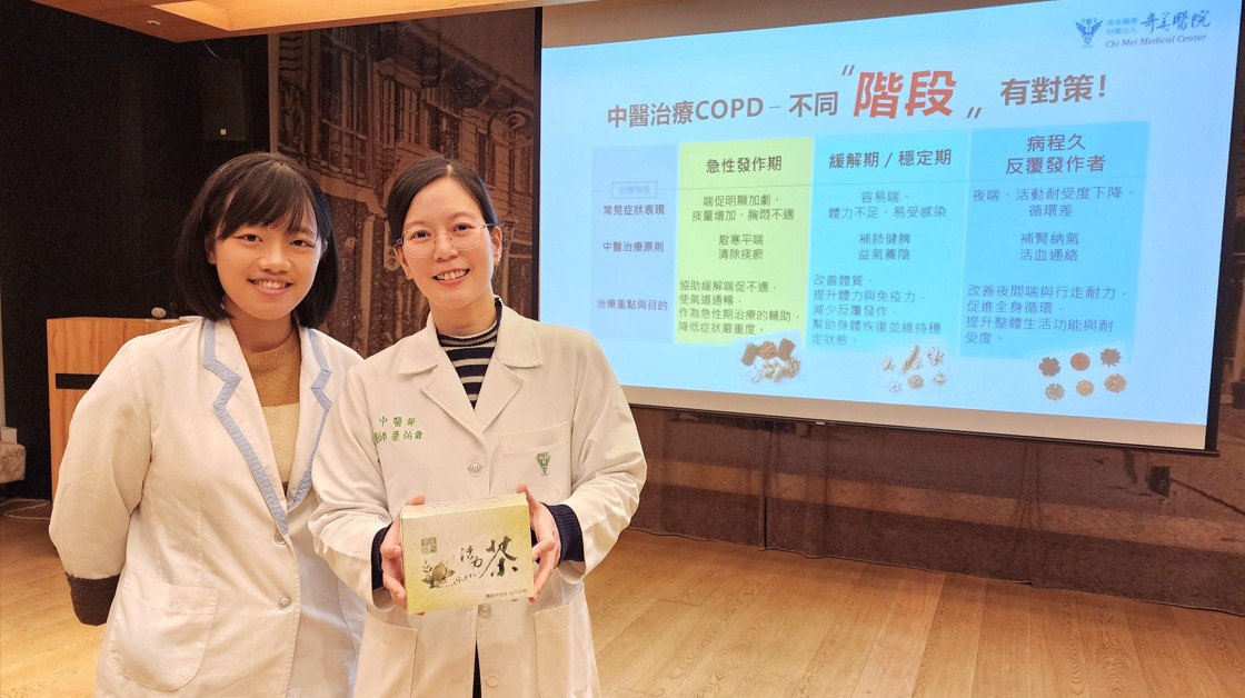 奇美醫療財團法人奇美醫院中醫部主治醫師梁祐爾強調,針對接受西醫治療但症狀仍反覆發作的慢性阻塞性肺病(COPD)病人,加入中醫合療並非取代既有藥物,而是從體質、症狀表現與誘發因素著手,透過辨證論治,協助改善痰多、喘促、體力下降與睡眠不佳等問題。臨床經驗顯示,透過中西醫合療的方式,病人呼吸道發作次數減少、活動耐受度與生活品質逐步改善,也有助於降低類固醇使用頻率,提升長期疾病控制成效,讓慢性阻塞性肺病(COPD)病人能在日常生活中走得更遠、喘得更少。