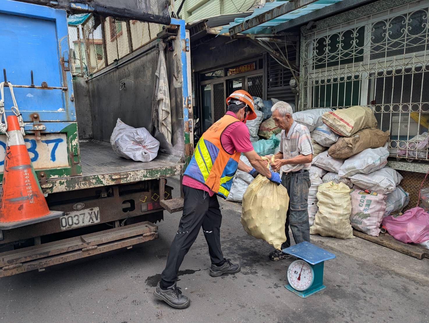 臺南市環保局為照護第一線弱勢資收個體戶,維持基層資源回收量能,促進拾荒者公正轉型,持續推動「資收關懷計畫」,且按個體戶實際資源回收量,以較高價金變賣收購費率,補助其增加收益以減輕生活負擔。