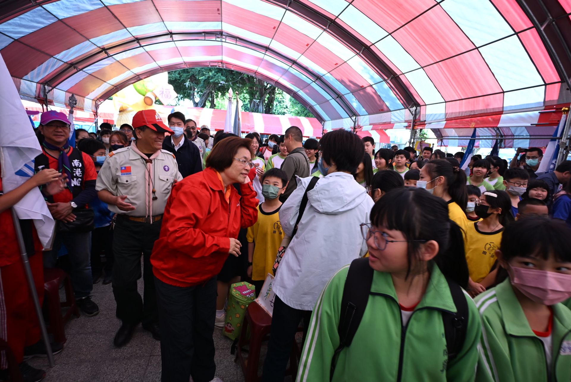 彰化縣政府6日在田中鎮舉行「彰化縣115年三五童軍節慶祝大會」,縣長王惠美與全縣童軍夥伴齊聚一堂,共同慶祝童軍節。王惠美表示,今年主題是「童軍尚科技,馬到必成功」,結合科技實境解謎與田中社區踏查,讓學生親自在田中老街,透過數位工具解鎖歷史謎題,學習分工合作、資訊整合,培養團隊協作知能。