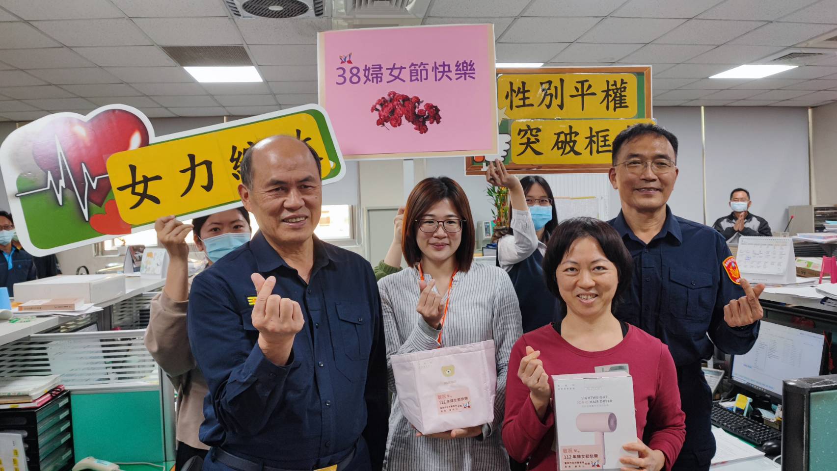 局長廖宗山表示,在講求性別平權的社會,警察機關女性同仁逐漸增加,各單位都可見到女性員工堅守崗位,這也表示女性在職場上已「撐起半邊天」。在這個別具意義的節日,除了感謝女性同仁辛勞外,更衷心企盼女性同仁在職場上發光發熱,勇於突破性別刻板印象,持續於警政工作中注入柔韌的堅毅力量。
