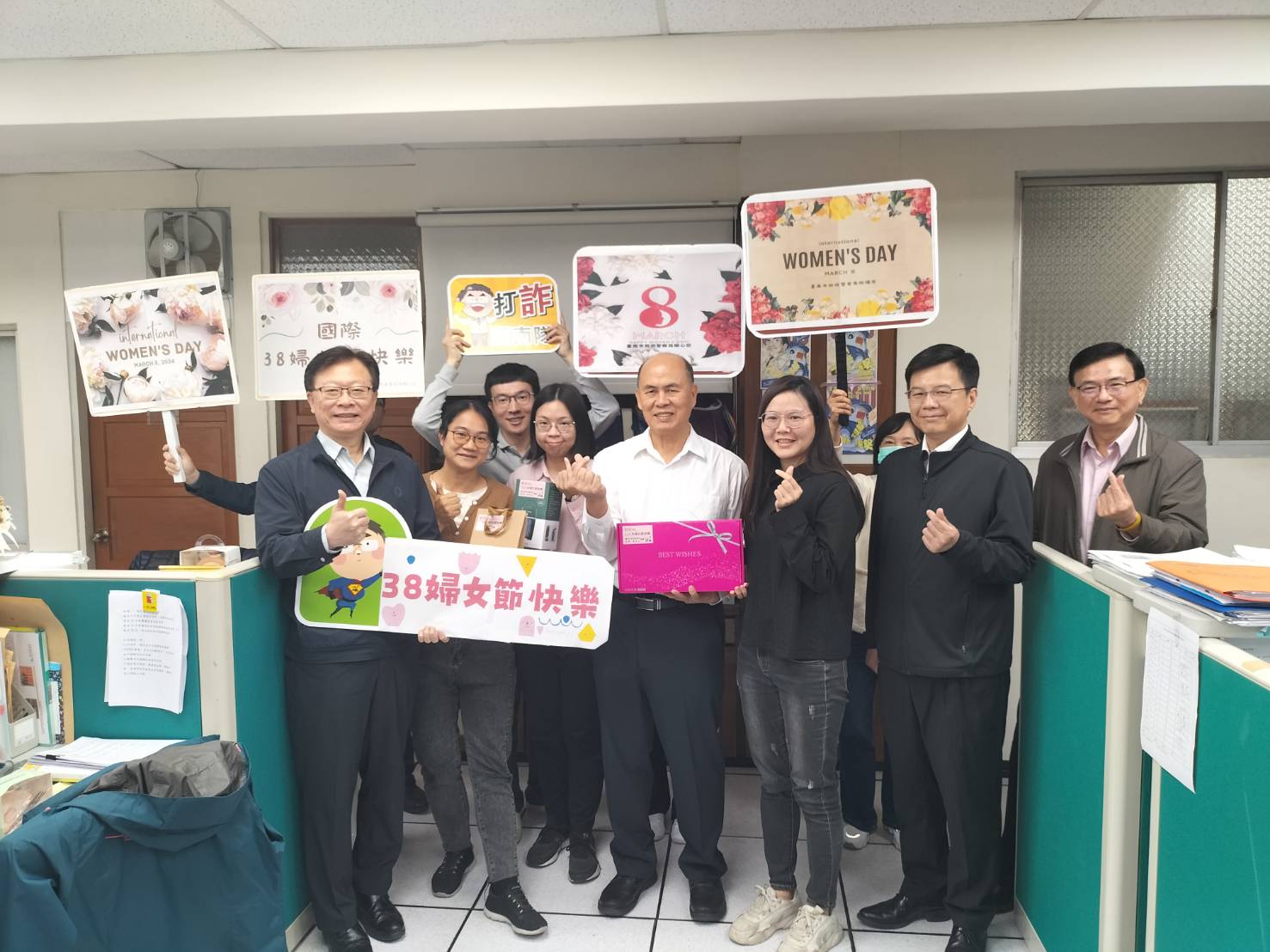 臺南市政府警察局局長廖宗山在國際婦女節,為感謝女性同仁在工作崗位上的辛勤付出,特別帶領高司長官親自至各單位獻上網路人氣季節限定甜點-「雙餡草莓生乳捲切片小禮盒」給每位女性同仁,希望富含維他命C的當令嬌嫩草莓,帶給每位女性同仁美顏好氣色,另外也致贈同仁自行選擇之實用禮品,藉此表達警察局對於女性同仁每日在家庭及工作上的奉獻,並給予高度的讚揚及感謝。